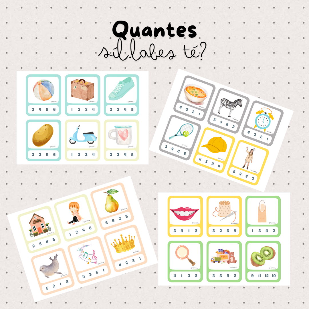 En aquest material hi trobareu diferents targes amb imatges per encerclar el número de síl.labes que té cada paraula.